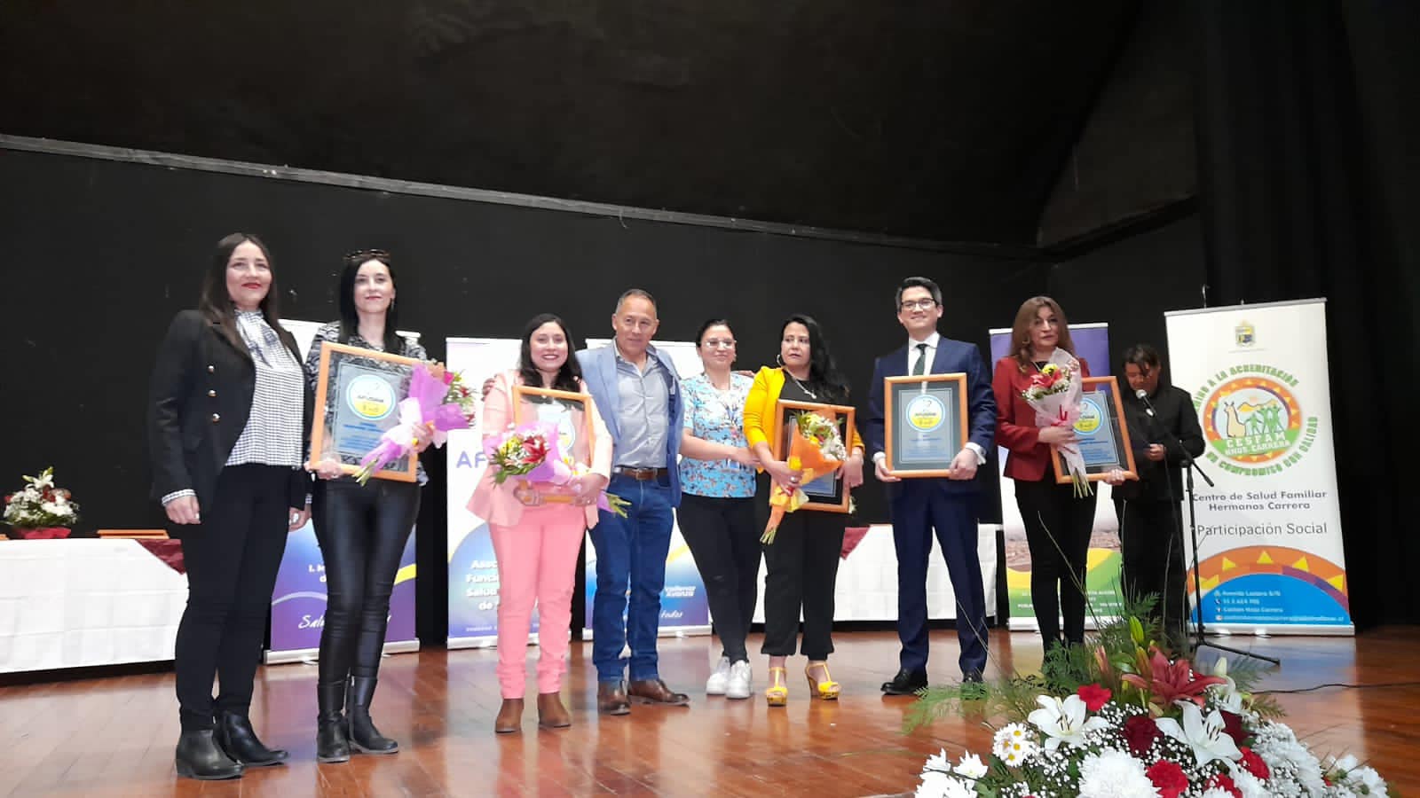 Gloria Judith Arenas, Deicy Aracena, Myriam campillay, María Godoy, Yolanda Campillay, Eduardo Ormeño, Olga Viñales y Victoria Campillay recibieron el cariño y reconocimiento de sus compañeras y compañeros de trabajo por su compromiso con la salud de la comunidad.