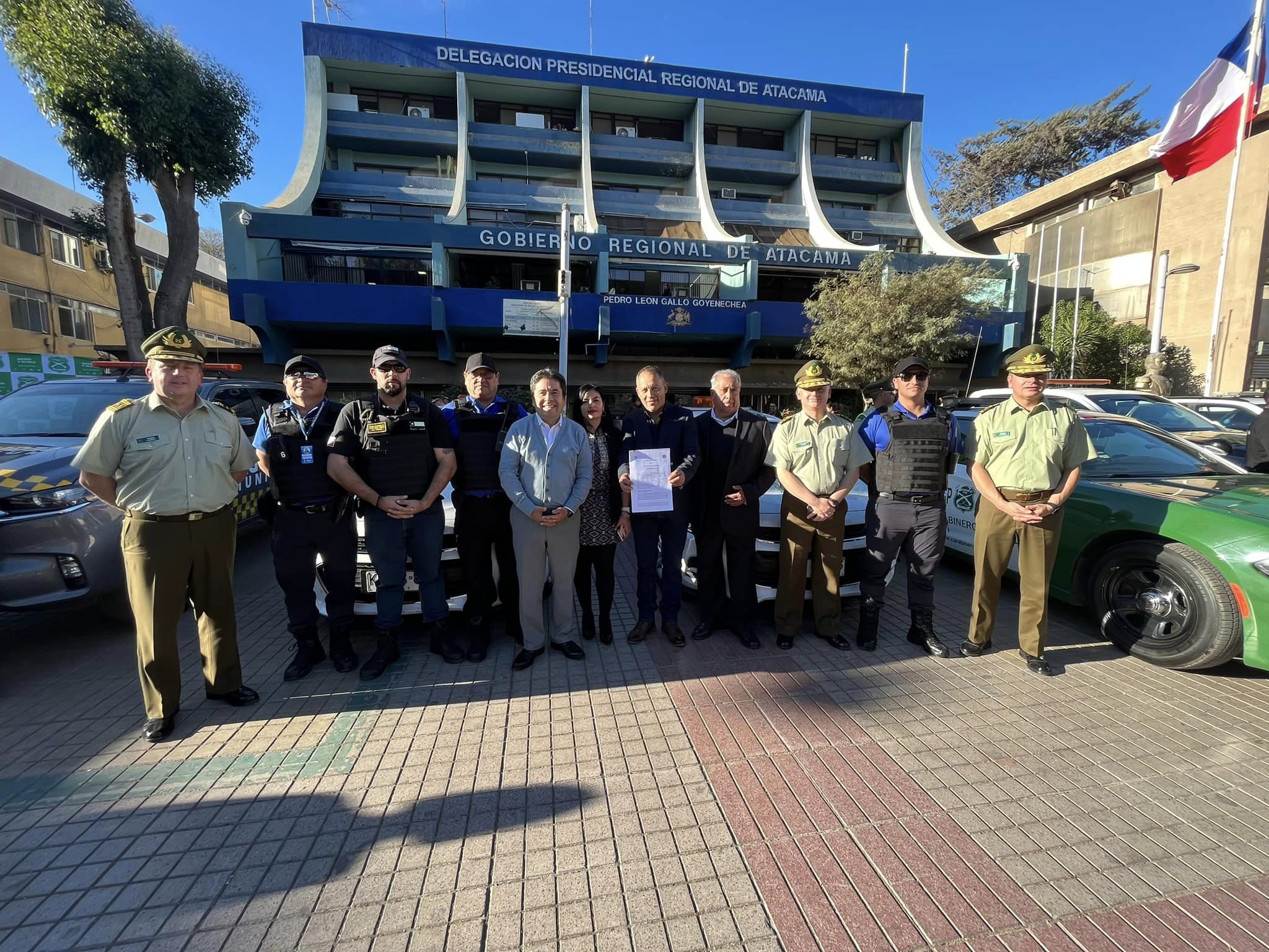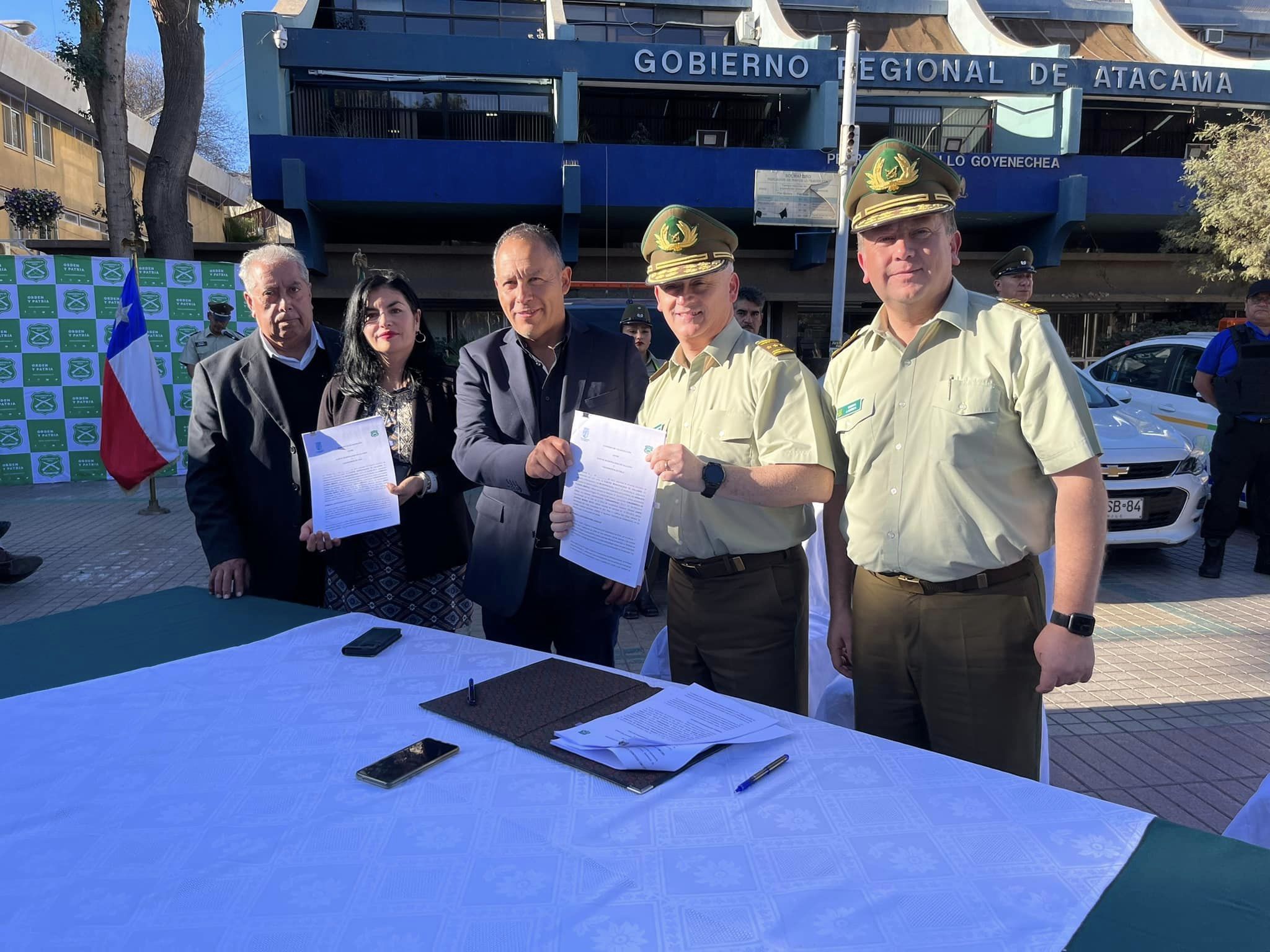 El sello de este importante hito se llevó a cabo en la comuna de Copiapó donde participaron Autoridades de la Delegación Presidencial, el Gobierno Regional, Carabineros de Chile y representantes de distintas municipalidades de la Región de Atacama que también se vieron favorecidas con este con este convenio.