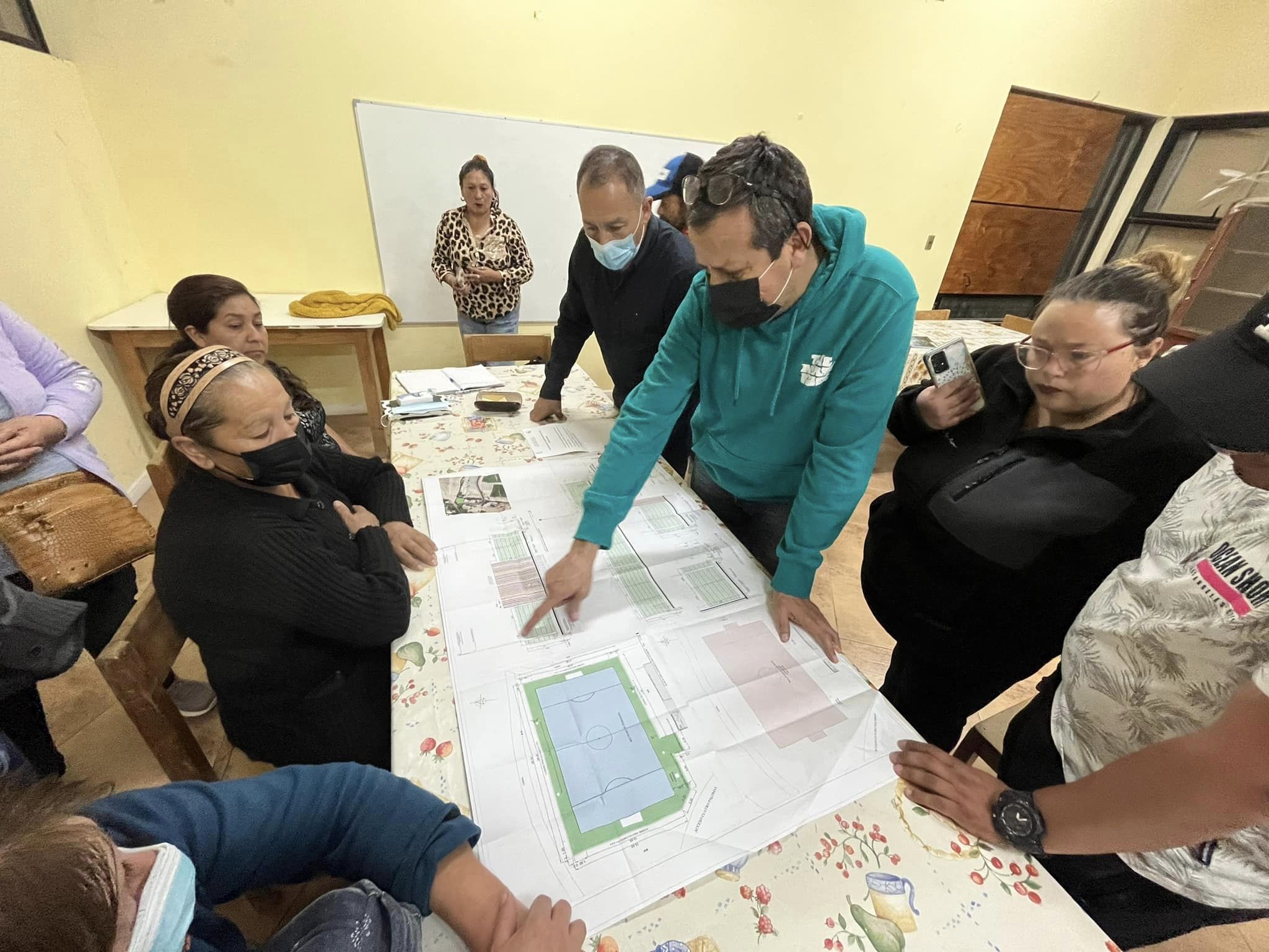Nuestro alcalde Armando Flores Jiménez junto al director de Secpla Rodrigo Ocaranza, presentaron a la comunidad y Junta de Vecinos de Cuatro Palomas, el proyecto de reposición de la multicancha del sector, el cual considera el recambio de la carpeta de rodado, cierre perimetral, luminarias y equipamiento como arcos de baby fútbol.