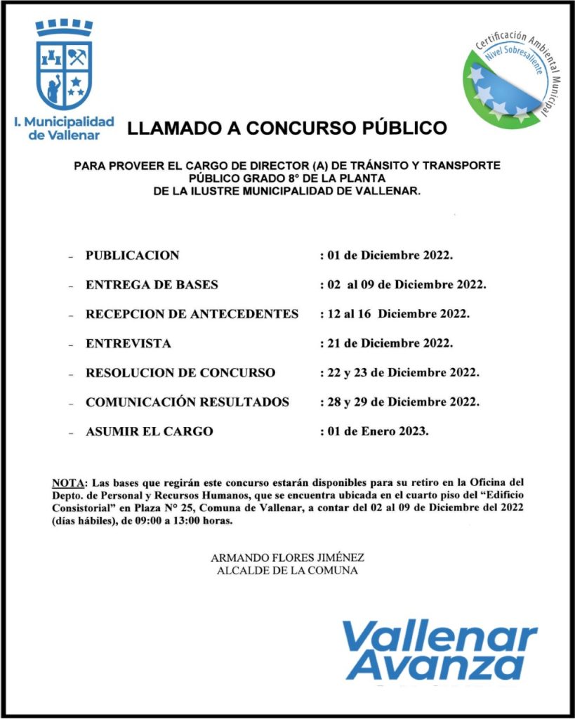 Llamado a concurso para proveer el cargo de “Director (a) de Tránsito y Transporte Público”