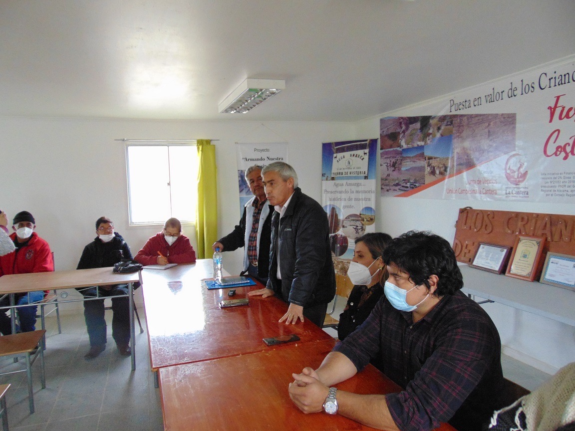 Hasta la sede de la Junta de Vecinos Unión Campesina La Cantera, ubicada en el sector de Agua Amarga, al sur de Vallenar, arribó el Subsecretario de Agricultura, José Guajardo Reyes, para reunirse con las y los crianceros de este amplio sector rural y que fue afectado fuertemente por las recientes lluvias en la zona.