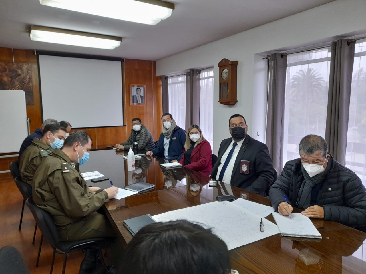 Alcalde de la comuna encabezó la reunión en donde participaron Carabineros, PDI, Bomberos, Delegación Provincial, SERVIU, INDAP, Vialidad, Nueva Atacama, además del equipo municipal.