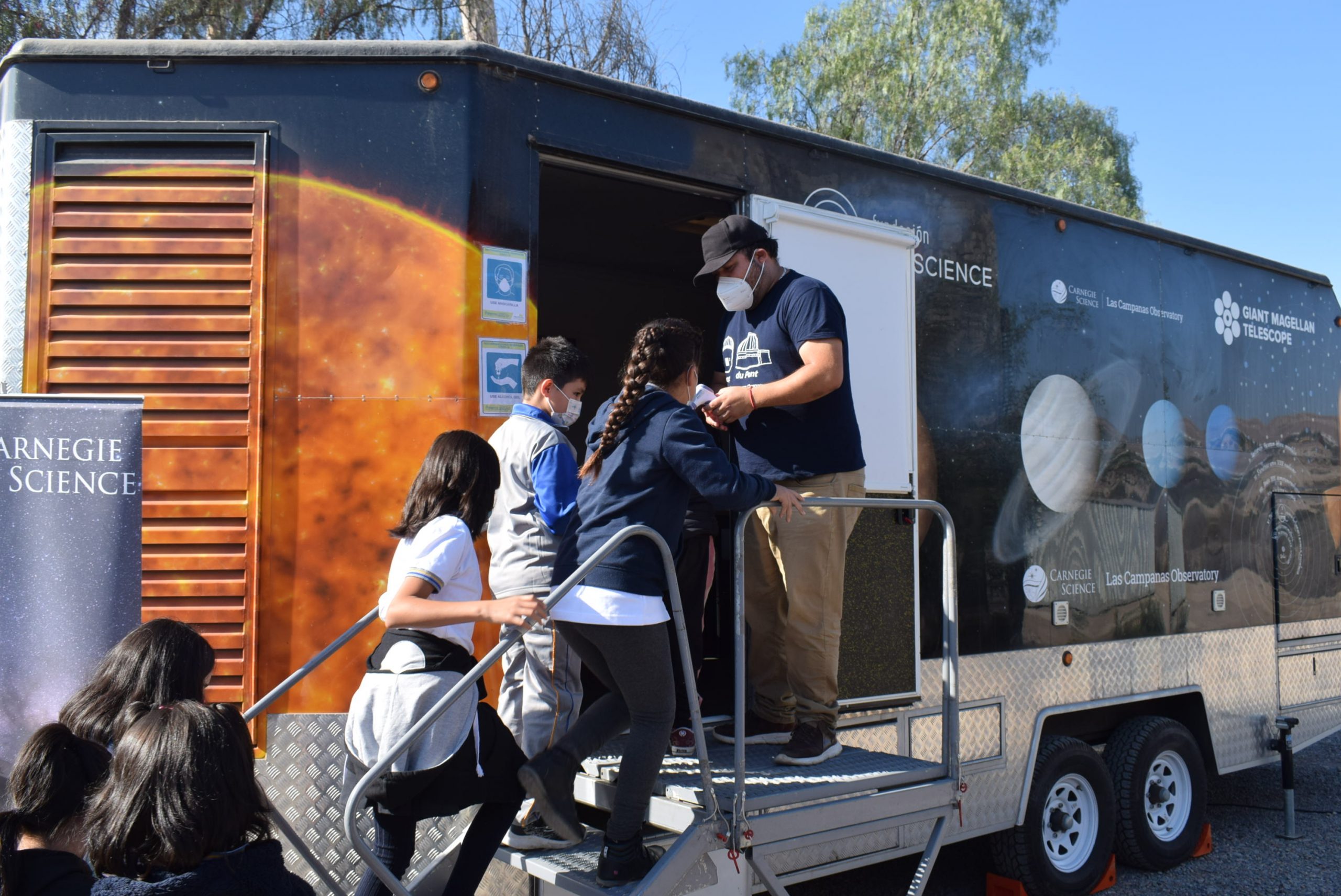 Al respecto, la primera autoridad comunal valoró esta experiencia que ha podido concretarse gracias a este trabajo conjunto con el observatorio Las Campanas. “Estamos celebrando el Día de la Astronomía y que mejor celebración que compartiendo con los equipos técnicos que trabajan en esta materia del observatorio Las Campanas y de otros sectores también con nuestros equipos, y que mejor que con niños y niñas en este caso de la escuela Hermanos Carrera que están en estos momentos y con mucha alegría podemos compartir este laboratorio móvil que esta entidad ha puesto a disposición de nuestra comuna para poder celebrar como corresponde el Día de la Astronomía, conociendo con mayor detalle cuáles son los planetas, qué es lo que miramos en el firmamento, y una serie de experiencias de laboratorio”, expresó el alcalde Flores.
