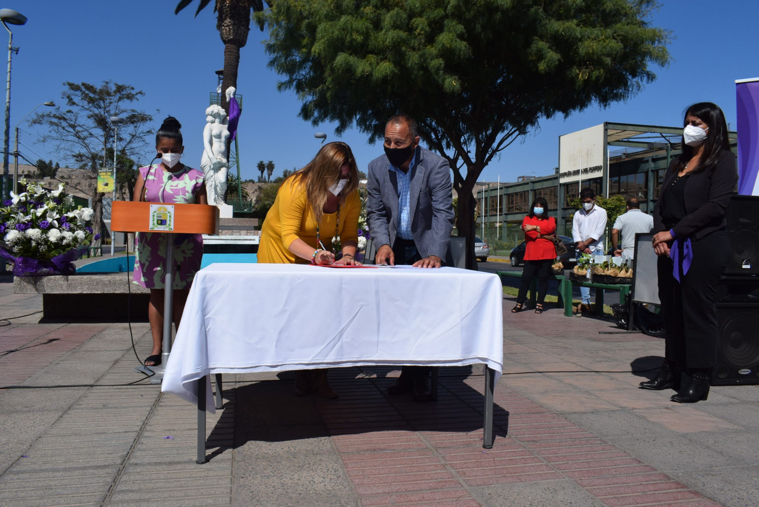 Para el cierre de la ceremonia, la primera autoridad comunal suscribió un protocolo interno de buenas prácticas para la prevención de violencia contra las mujeres.