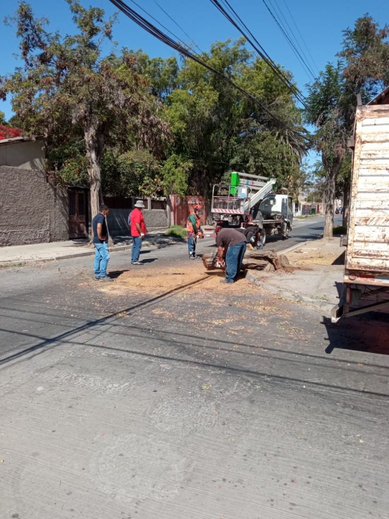Al respecto Yony Rojas, encargado del Departamento de Aseo, explicó que “lamento informar que en el día de ayer tuvimos que cortar un árbol, este árbol fue chocado por un vehículo y se encontraba sostenido por los cables del tendido eléctrico, lo evaluamos con nuestro técnico y no queda otra alternativa que cortarlo”, asimismo recalcó que “también quiero dejar en claro que la política de esta administración no va a cortar ningún árbol, solamente cuando sea una situación como la que hemos vivido en donde el árbol constituía un peligro para los transeúntes y vehículos del sector”.